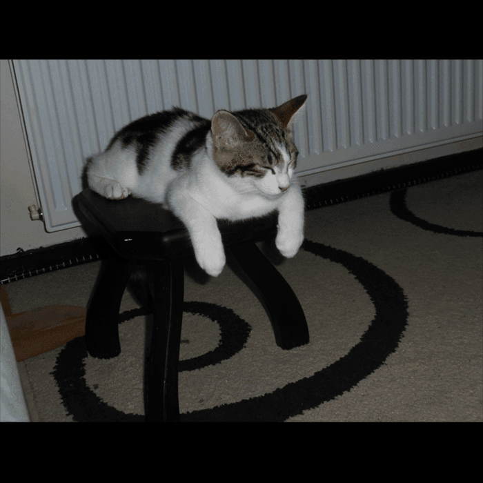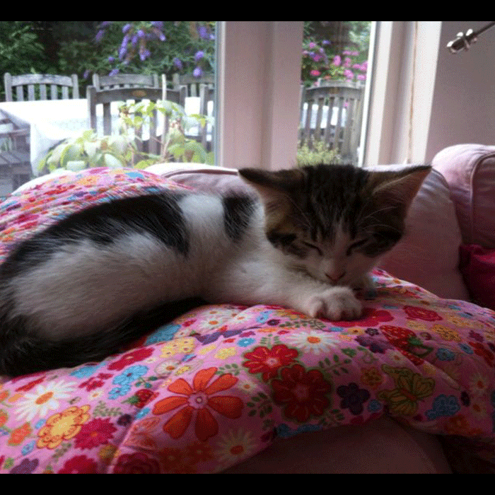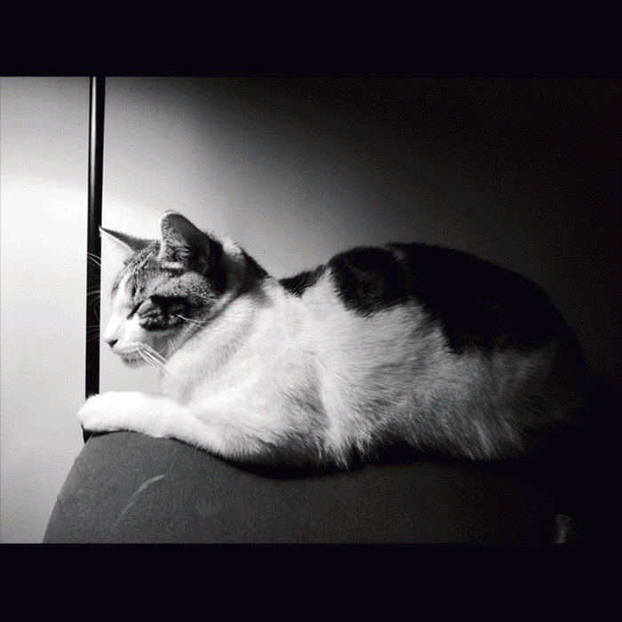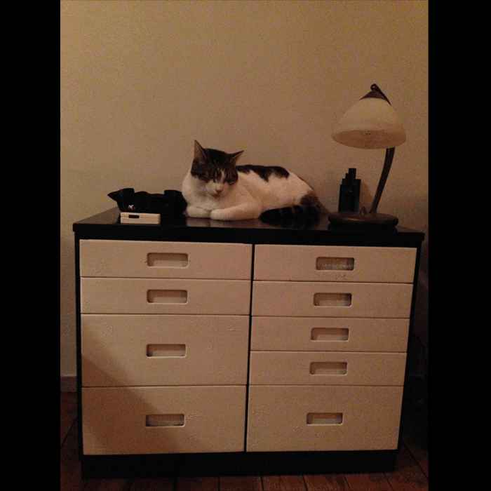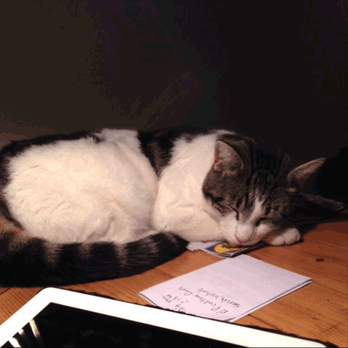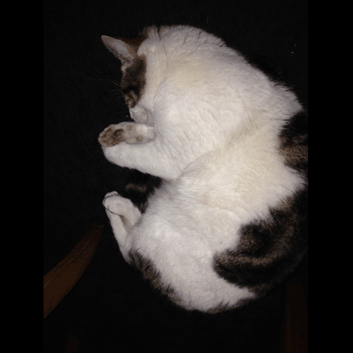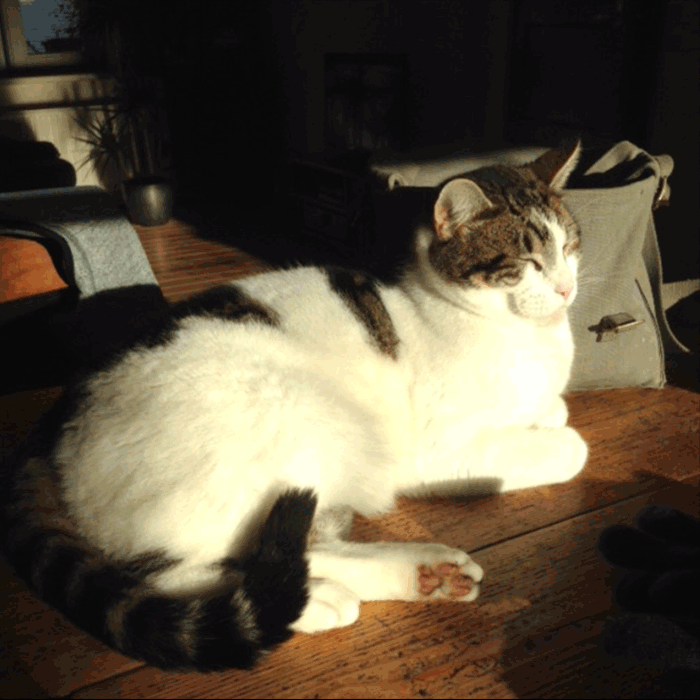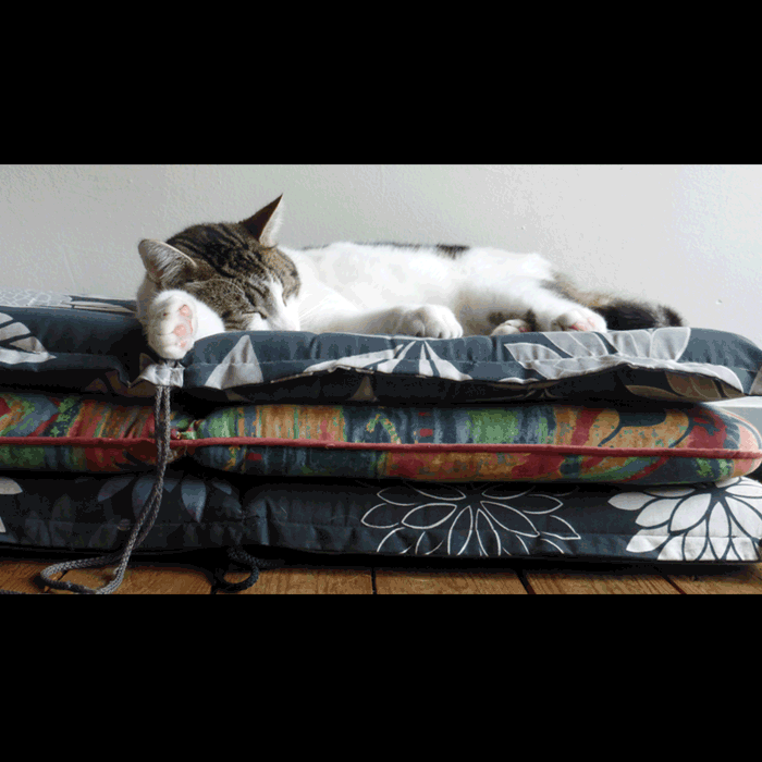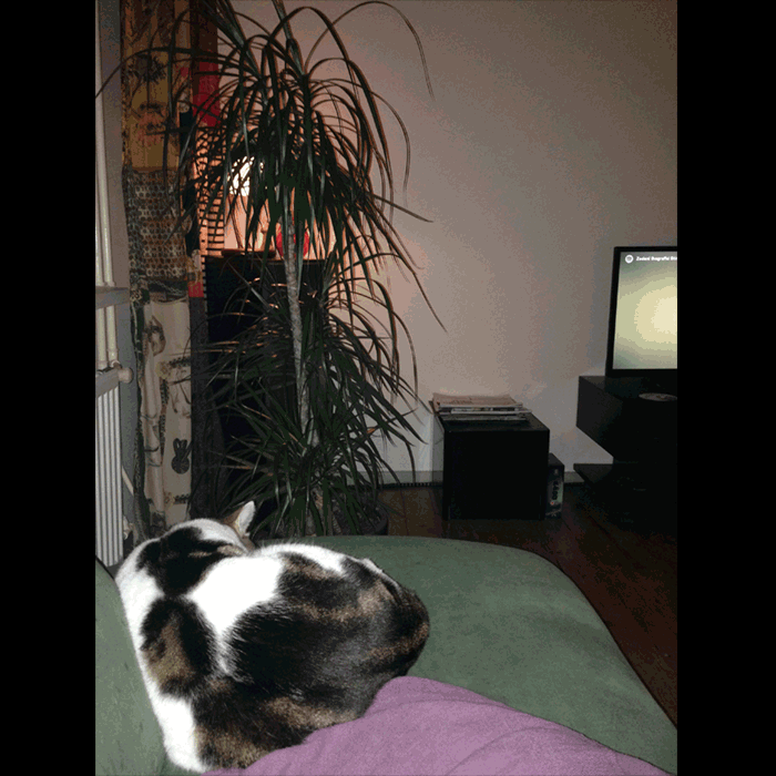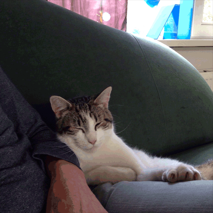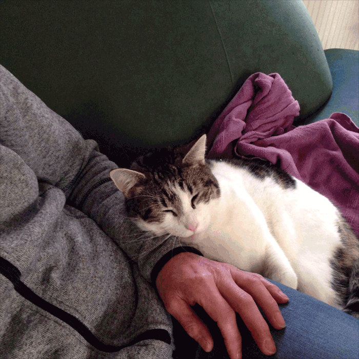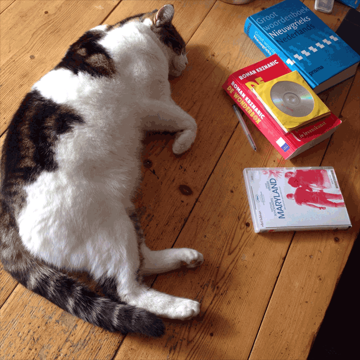 Een vaste slaapplek had je niet. De vensterbank, het yogakussentje, de tafel (languit), zelden op bed. En alleen op de bank als ik er lag.