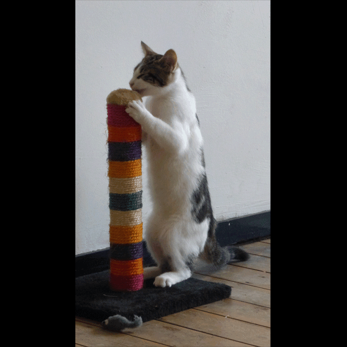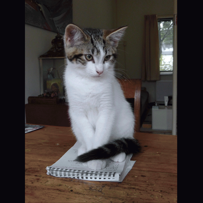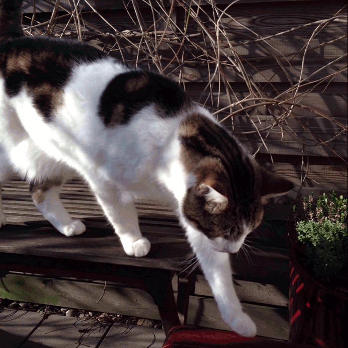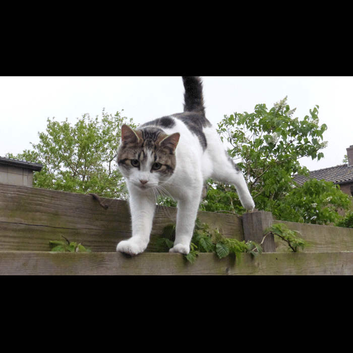 Zoals je stapte op de houten vloer, met je vier poten. Gewoon sluipen als een kat deed je wel buiten. In huis was je luid en duidelijk aanwezig.