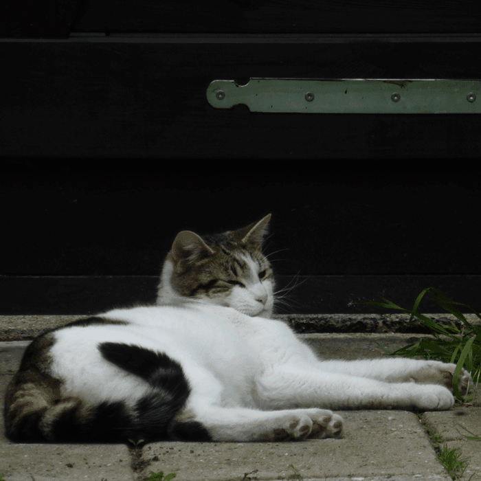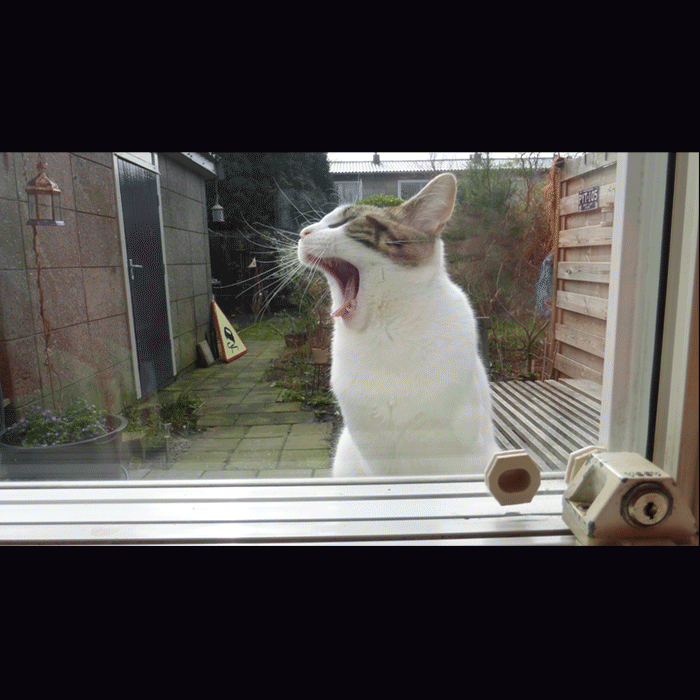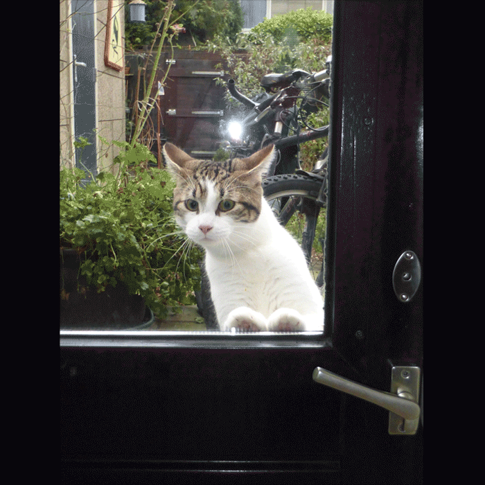 Zo was het katteluikje weg door een een nieuwe deur. Dus in de nacht niet meer naar buiten. In een dag was je er aan gewend. Om 9 uur naar buiten, en na 23 uur binnen. Zonder klagen.