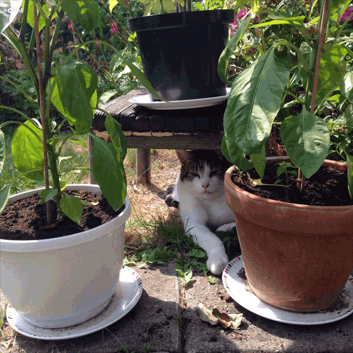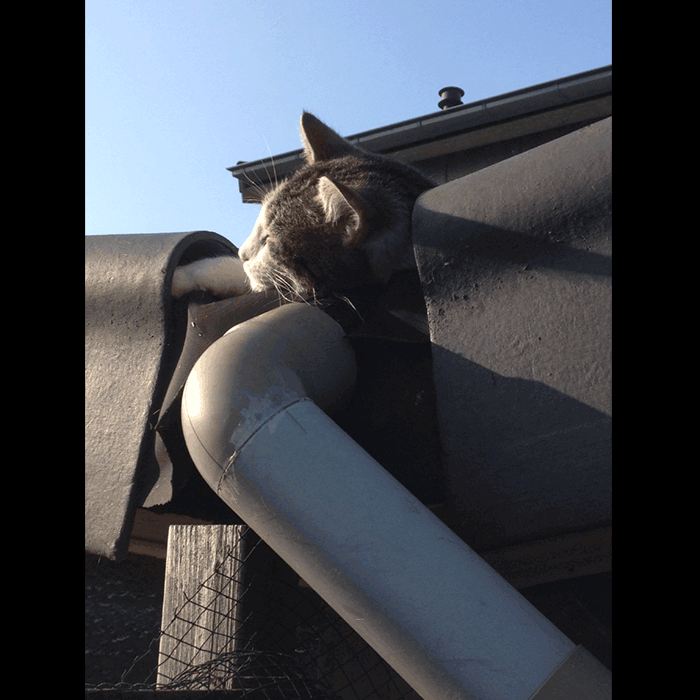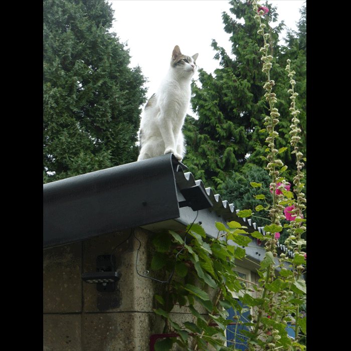 Schuilen voor de regen, in het raam van de schuur, of in die bij de buurvrouw, of onder de bank buiten.