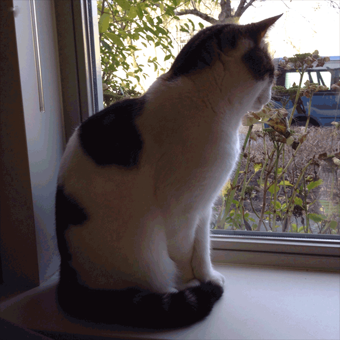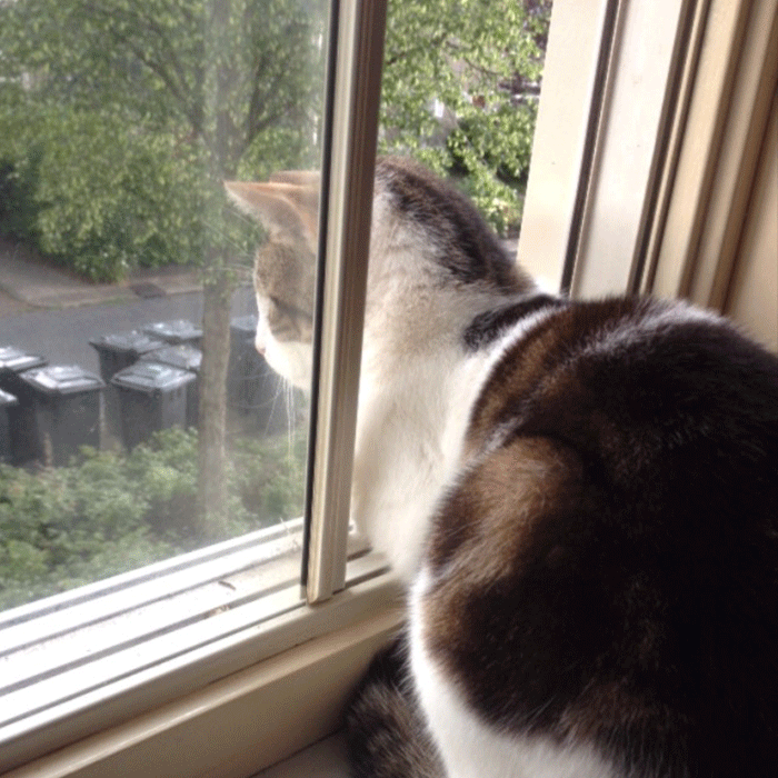Wilde je naar buiten, ik zei nee. En je met kat-geluidjes morrend naar je vensterbank ging.
