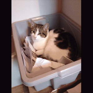 Zo was het katteluikje weg door een een nieuwe deur. Dus in de nacht niet meer naar buiten. In een dag was je er aan gewend. Om 9 uur naar buiten, en na 23 uur binnen. Zonder klagen.