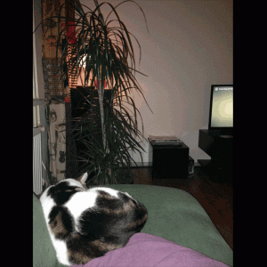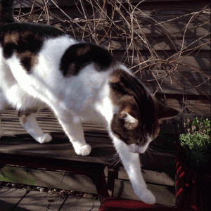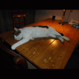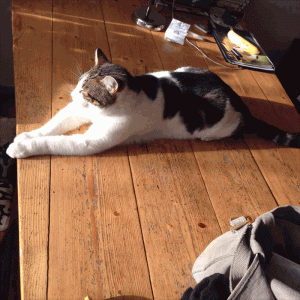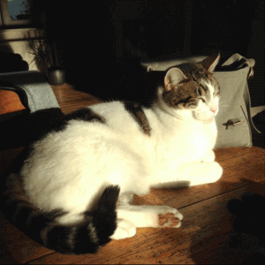 Zoals je stapte op de houten vloer, met je vier poten. Gewoon sluipen als een kat deed je wel buiten. In huis was je luid en duidelijk aanwezig.