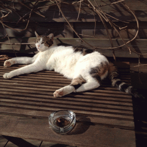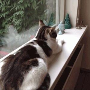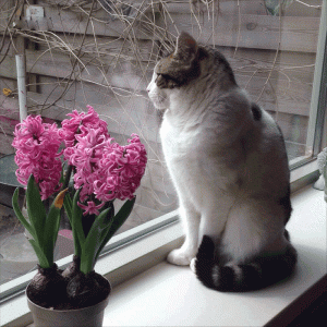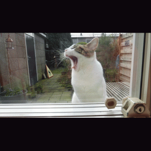 Wilde je naar buiten, ik zei nee. En je met kat-geluidjes morrend naar je vensterbank ging.